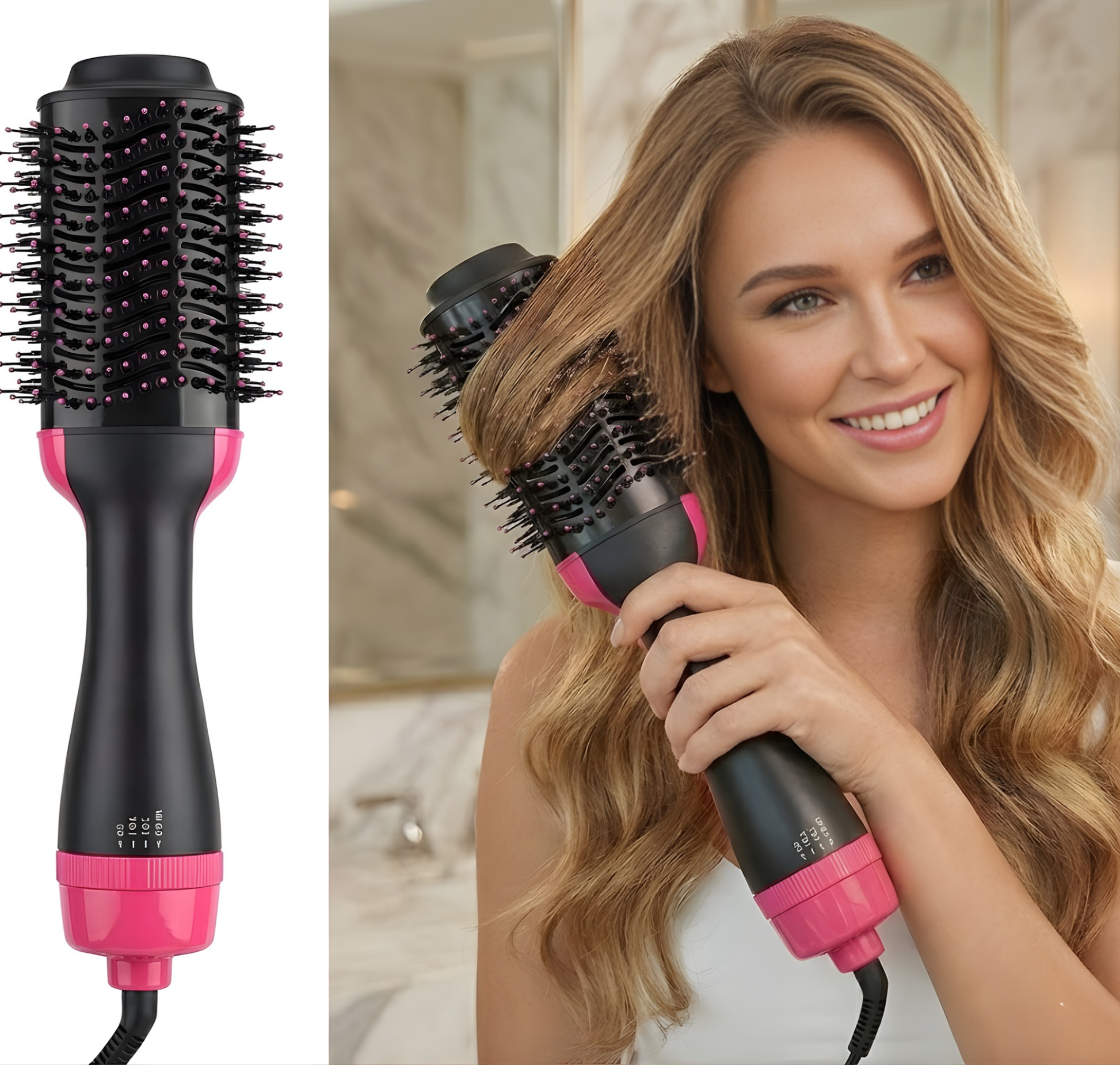 ¡Desenreda tu cabello y al mismo tiempo obtén un alisado o rizadо en un mismo paso, sin maltratar ni quebrar!